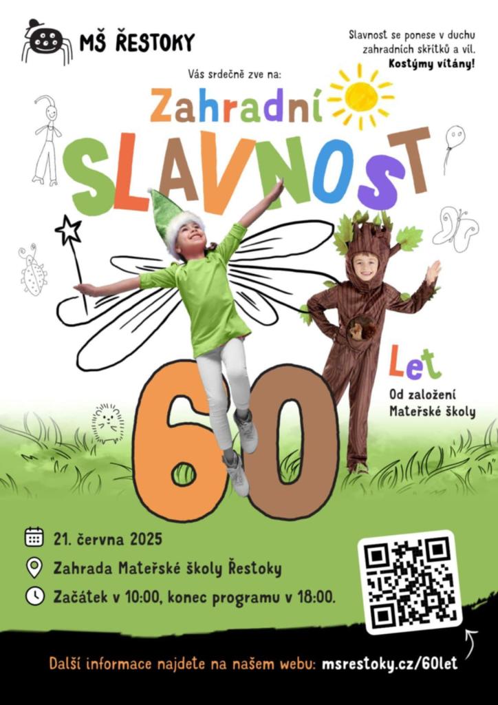 Zahradní slavnost u příležitosti 60 let založení MŠ. Zábava, workshopy, muzika, hry...