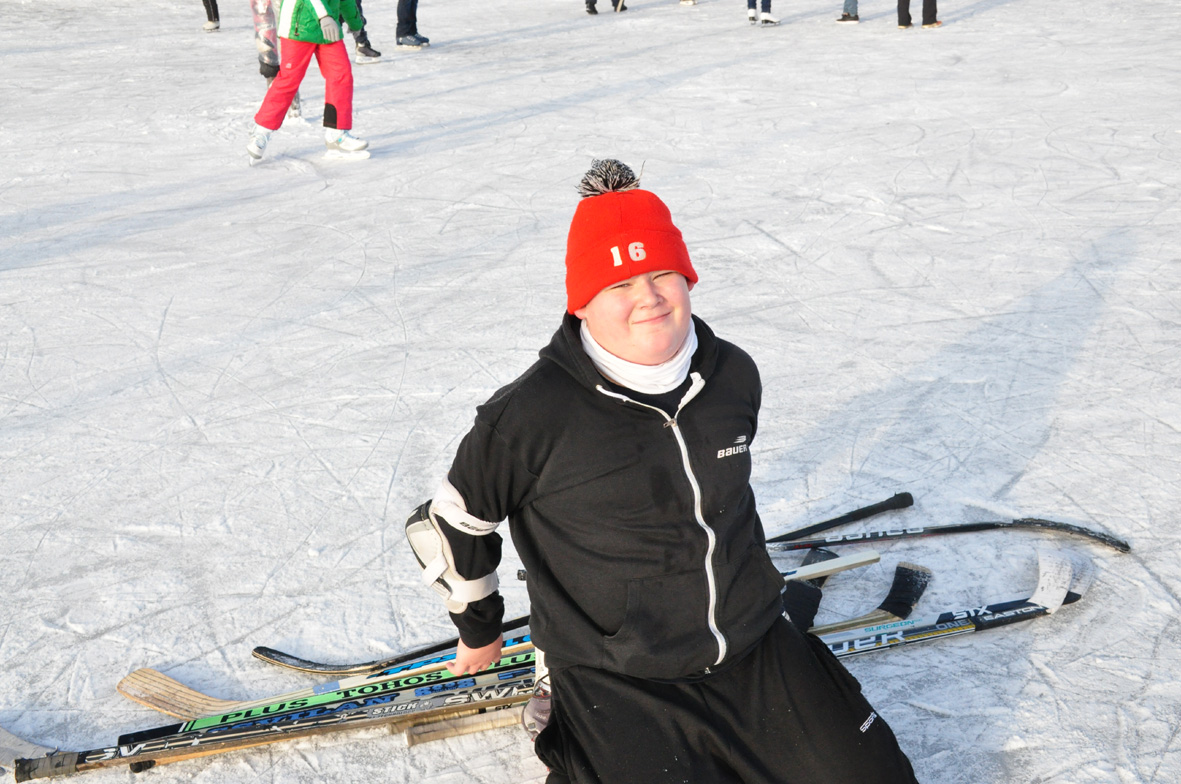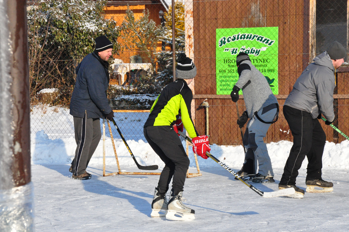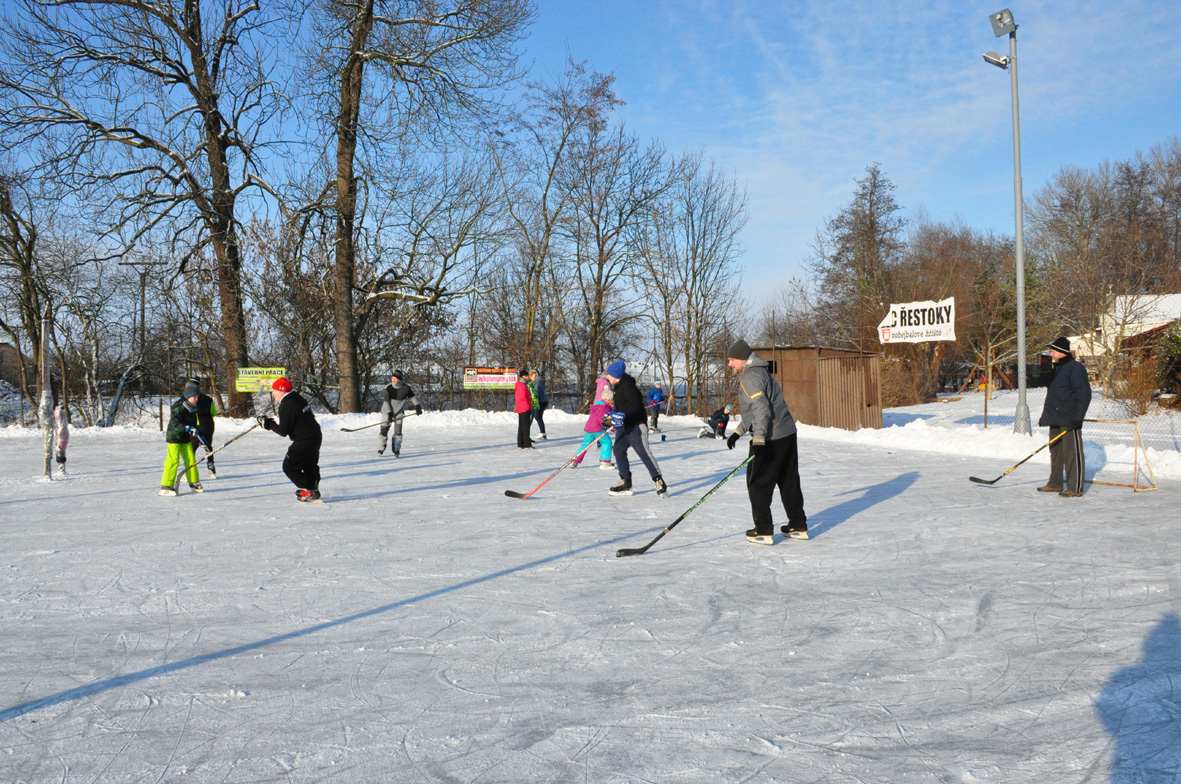 Práce otců a tuhé mrazy - krásné kluziště v Řestokách.